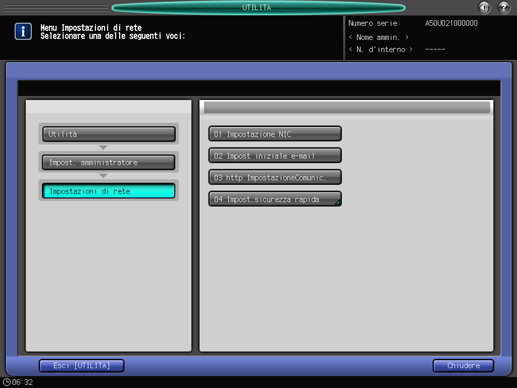 Premere [Impostazioni di rete] nella schermata [Menu Impost. amministratore], quindi premere [Impostazione NIC].