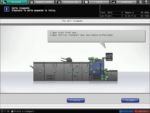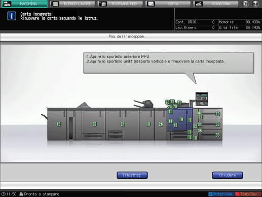 17 | Finisher FS‑531/Finisher FS‑612, Inseritore copertina PI‑502, oppure cassetto secondario (inferiore) |