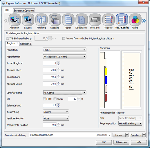 [Papierformat] | [A4 Register (12,7 mm)], [A4 Register (15,0 mm)], [Letter Register] | Wählen Sie ein Papierformat für ein Register. |