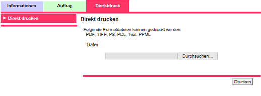 [Direkt drucken] | Geben Sie eine auf dem Computer gespeicherte Datei für den Druck auf diesem System an. |