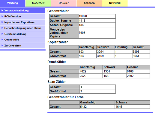 [Verbrauchszählung] | Ermöglicht den Abruf der Verbrauchszählung dieses Systems. Ausführliche Informationen finden Sie unter Verbrauchszählung. |