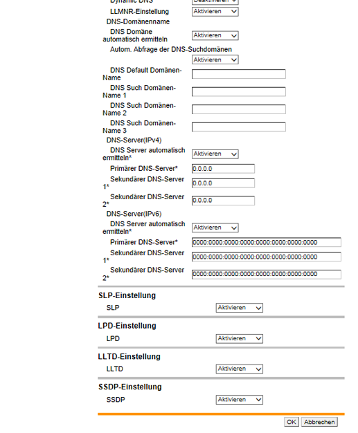 [SMB] | Richten Sie die Einstellungen für den SMB-Client, für WINS, für den SMB-Druck oder für das Direkt-Hosting ein. Ausführliche Informationen finden Sie unter WINS-Einstellung, Client-Einstellung, Druckeinstellung oder Einst. für Direkt-Hosting. |
