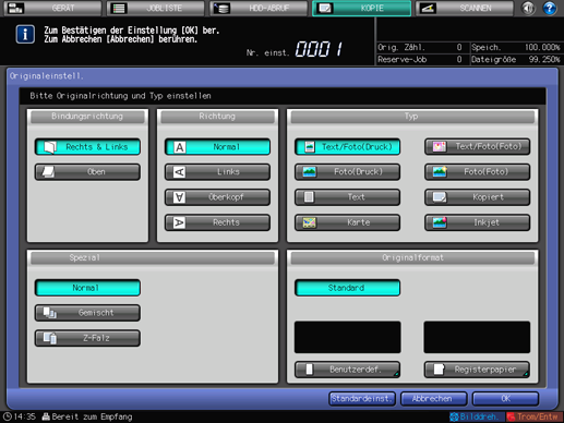 Der Bildschirm [Originaleinstell.] wird angezeigt.
