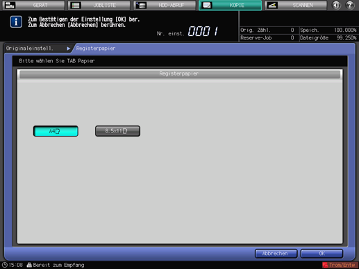Drücken Sie auf [Registerpapier] unter [Originalformat].