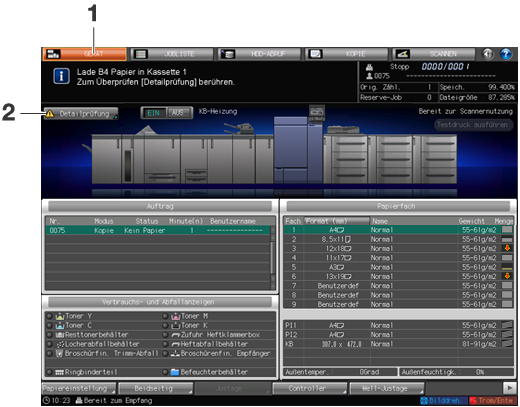 Wenn die obige Meldung eingeblendet wird, wird [Detailprüfung] im Bildschirm [GERÄT] angezeigt.
