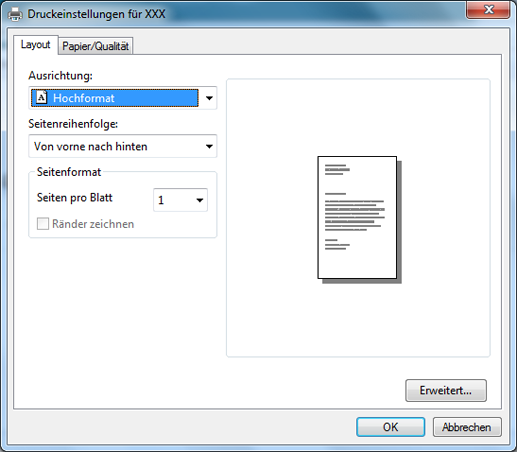 Sie können die Druckausrichtung, die Seitenreihenfolge und die Anzahl der Seiten pro Blatt festlegen.