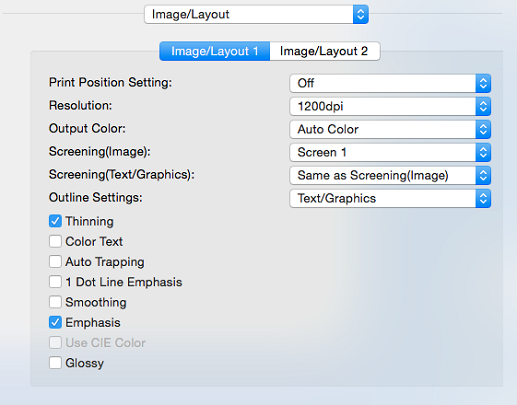 [Ausdünnen] | [Aus], [Ein] | Aktivieren Sie diese Option, um die Strichstärke von Text oder Liniengrafiken festzulegen. Diese Einstellung wirkt sich auch auf weiße Zeichen auf einem farbigen Hintergrund aus. |