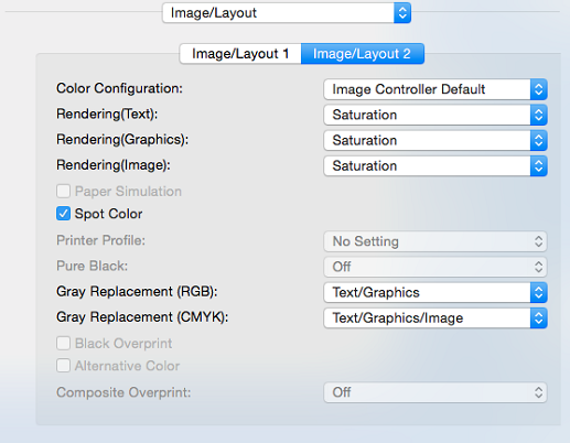 [Farbkonfiguration] | [Keine Einstellung], [Druckerstandardwerte] | Legen Sie fest, ob die Farbkonfiguration im Bildcontroller verwendet werden soll. |