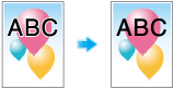 [Glätten] | [Glätten] | Wenn [Ein] ausgewählt wird, können Sie den Text mit einer Dichte von 100%, wie z. B. K=100%, und Umrisse von Liniengrafiken gleichmäßig geglättet drucken. Die Glättungsfunktion wird nur auf den Bereich der Primärfarben (C, M, Y oder K) angewandt. In Bereichen mit gemischten Farben bleibt sie ohne Wirkung. |