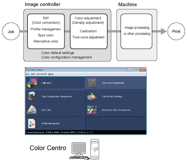 Color Centro stellt durch die Verwaltung von Farben mit dem Bildcontroller den ordnungsgemäßen Farbdruck auf diesem System sicher.