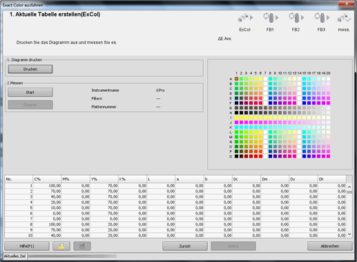 Der Diagrammdruck wird durchgeführt. Nach dem Druck wird der Bildschirm für die Exact Color-Justage wieder angezeigt.