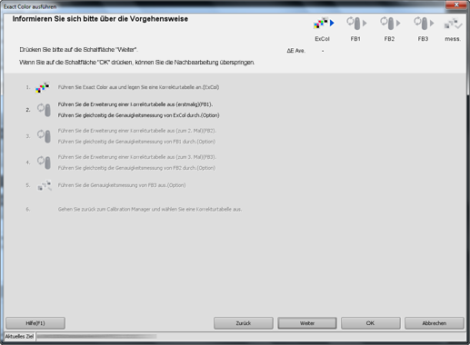 Es wird empfohlen, die Exact Color-Justage ca. dreimal zu wiederholen.