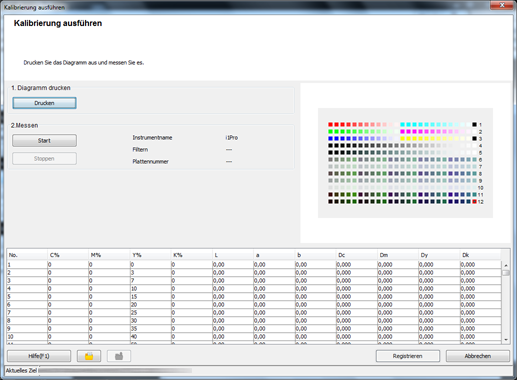 Der Bildschirm für die Ausführung der G7-Kalibrierung wird angezeigt.