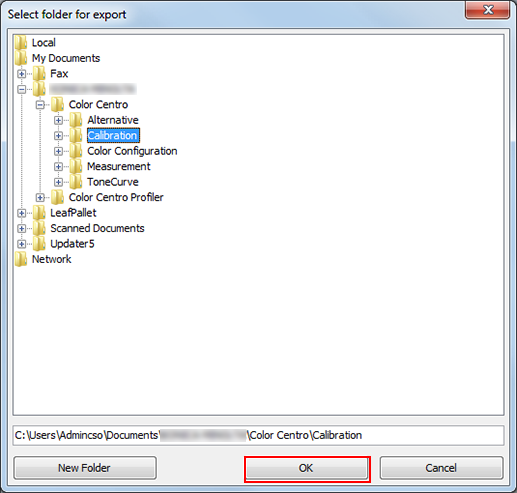 Der Bildschirm [Kalibrierungsdatei exportieren] wird angezeigt.