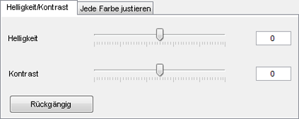 [Rückgängig] | Stellt im Feld [Helligkeit] und im Feld [Kontrast] den Wert "0" ein und setzt die Einstellungen im Register [Helligkeit/Kontrast] zurück. |