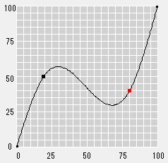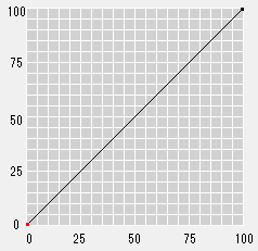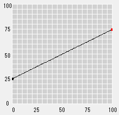 Die Punkte "0" (Startpunkt) und "100" (Endpunkt) können nicht nach links oder rechts verschoben werden. Die Nachbarpunkte können aber zu 1 % oder 99 % bewegt werden. Wenn Sie den hinzugefügten Punkt, der neben dem Endpunkt liegt, ziehen, können Sie den benachbarten Bereich von beiden Enden auf nahezu den gleichen Wert (den Ausgabewert) setzen.