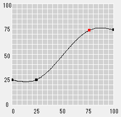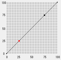 Darüber hinaus können die Positionen von 25 %, 50 % und 75 % automatisch als Basispunkte entsprechend den Einstellungen im Register [Helligkeit/Kontrast] zur Kurve hinzugefügt werden. Sie können die Tonwertkurve auch anpassen, indem Sie die Basispunkte verschieben.