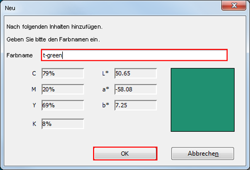 Geben Sie den [Farbnamen] ein und klicken Sie auf [OK].