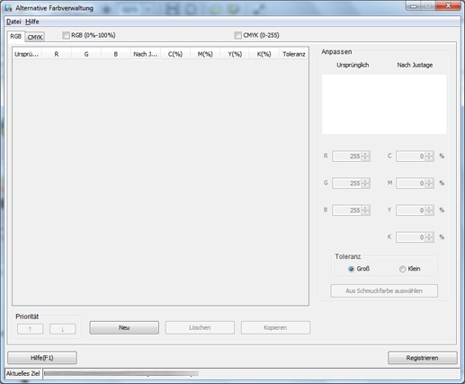 Klicken Sie auf das Register [RGB] oder auf das Register [CMYK] im Bildschirm [Alternative Farbverwaltung].