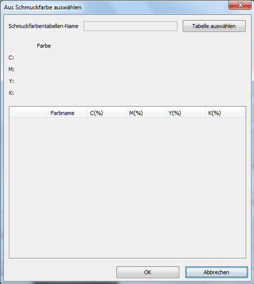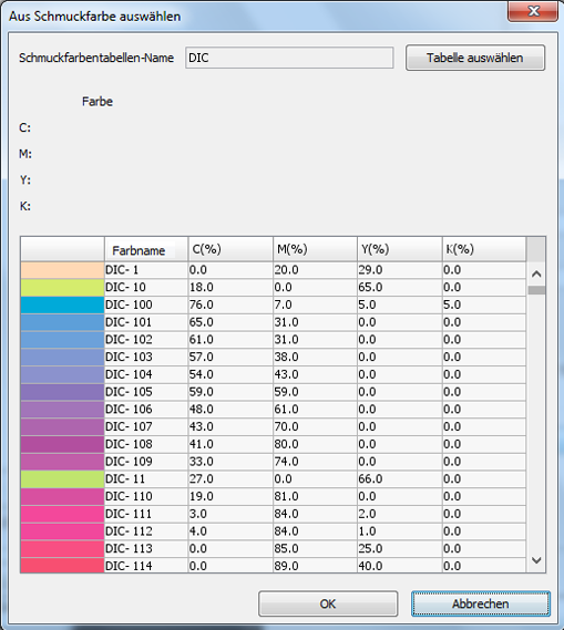 Markieren Sie in der Liste die Schmuckfarbentabelle, aus der die Schmuckfarbe ausgewählt werden soll.