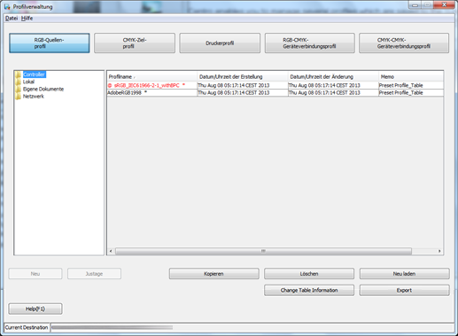 [RGB-Quellprofil] | Zeigt das gespeicherte RGB-Quellenprofil entsprechend der Auswahl in der Baumstruktur an. |