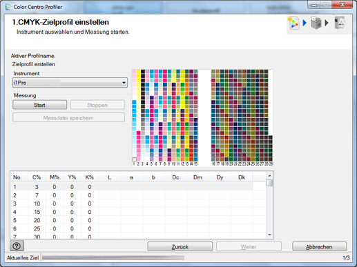 Wählen Sie ein Kolorimeter unter [Instrument] im Bildschirm für die Diagramm-Messung aus.
