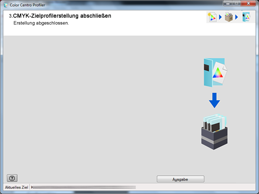 Wenn Sie Color Centro Profiler durch einen Klick auf [CMYK-Zielprofil] im Bildschirm [Profilverwaltung] gestartet haben, wird Color Centro Profiler geschlossen, um zum Bildschirm [Profilverwaltung] zurückzukehren.