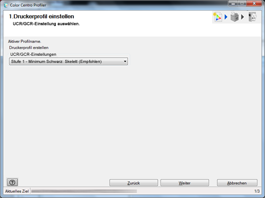 Wählen Sie die UCR/GCR-Stufe unter [UCR/GCR-Einstellungen] im Bildschirm "UCR/GCR-Einstellungen" aus.