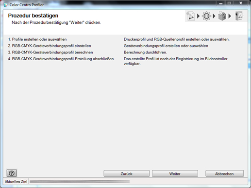Sie können ein RGB-CMYK-Geräteverbindungsprofil mit Color Centro Profiler erstellen.