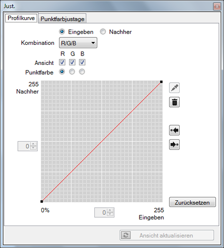 Wenn Sie die Profilkurve einer Farbe anpassen möchten, aktivieren Sie die Optionsschaltfläche [Punktfarbe] für diese Farbe.