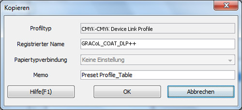 Das Duplikat des CMYK-CMYK-Geräteverbindungsprofils wird im Bildcontroller erstellt.