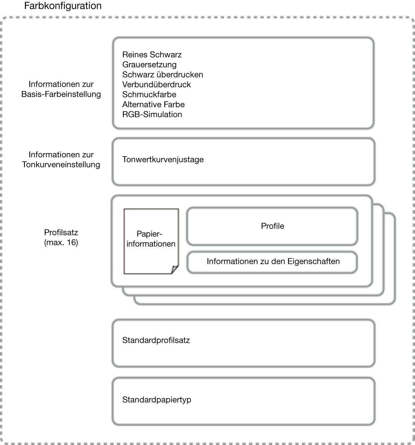 - Eine Sammlung von mehreren Profilsätzen, die allen Papiertypen entsprechen, die für die Auftragsausgabe verwendet werden