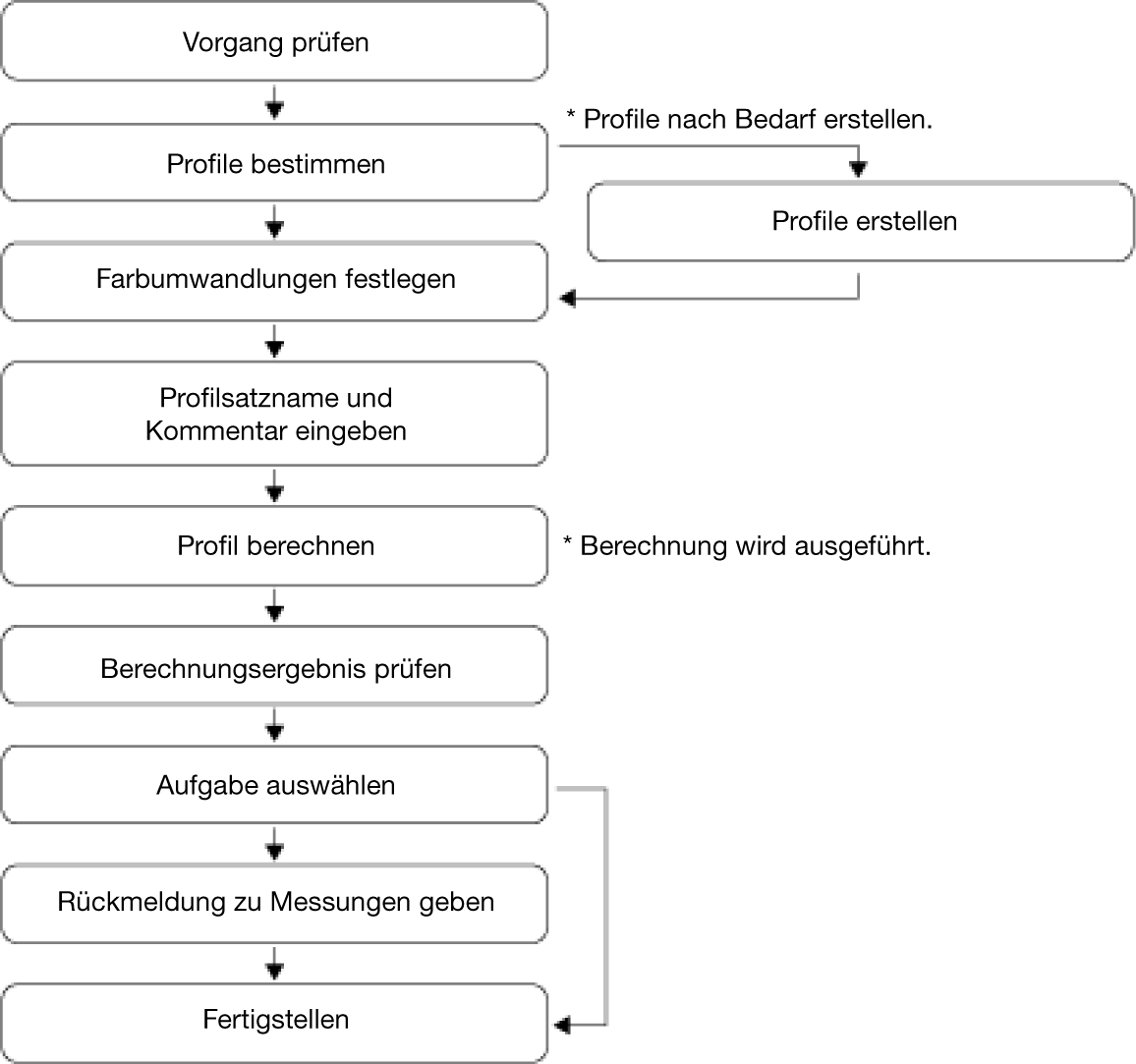 In diesem Abschnitt wird beschrieben, wie ein neuer Profilsatz mit Color Centro Profiler erstellt wird.