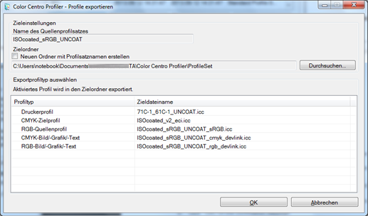 Klicken Sie im Bildschirm auf [Durchsuchen] und wählen Sie den Speicherort für die Profile aus. Klicken Sie dann auf [OK].
