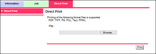 Geben Sie eine auf dem Computer gespeicherte Datei für den Druck auf diesem System ohne Verwendung des Druckertreibers an. Die unterstützten Dateiformate sind PDF, TIFF, PS, PCL, Text und PPML.
