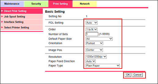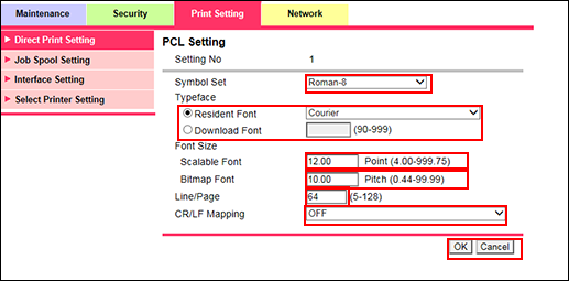 [PCL-Einstellungen] | Richten Sie die Einstellungen für den PCL-Druck ein. |