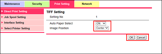 [TIFF-Einstellungen] | Richten Sie die Einstellungen für den TIFF-Druck ein. |