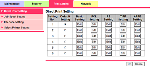 Klicken Sie in der Spalte [PCL-Einstellungen] auf [Bearbeiten].