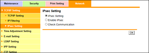 Klicken Sie auf [TCP/IP] - [IPsec-Einstellungen] im Register [Netzwerk], um diesen Bildschirm anzuzeigen.