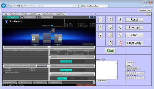 Das Touch Display, die Auftragsbedingungen und der Systemstatus können mit Hilfe der automatischen Aktualisierungsfunktion des Web-Browsers überwacht werden.