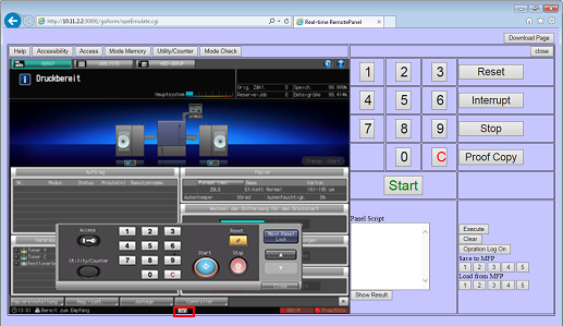 Wenn Sie auf [Lock Real Panel] klicken, wird die Bedienfeldsperre aktiviert. Das heißt, dass das Touch Display und das Bedienfeld nicht mehr genutzt werden können. In diesem Fall ist die Bedienung nur noch über das Remote-Bedienpult möglich. Wenn Sie im Remote-Bedienpult auf [Help] klicken, wird die Hilfe nicht angezeigt.