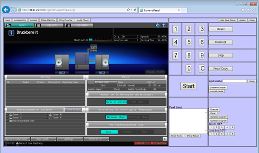 Zur Aufzeichnung eines Bedienvorgangs klicken Sie vorab auf [Operation Log On]. Der aufgezeichnete Bedienvorgang wird im Bereich [Panel Script] angezeigt. Klicken Sie auf [Operation Log Off], um die Aufzeichnung zu beenden.