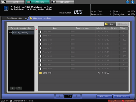 Fahren Sie mit Schritt 6 fort, wenn Sie die Daten im aktuellen Verzeichnis im Bildschirm [HDD-Speicher-Root] speichern möchten.