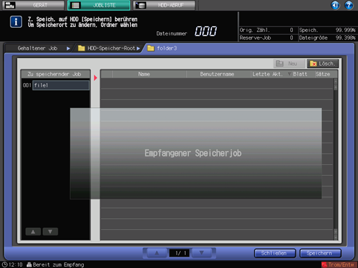 Drücken Sie auf [Abbrechen], um zum Bildschirm [HDD-Speicher-Root] zurückzukehren.
