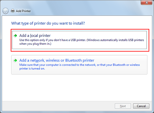 Klicken Sie auf [Einen lokalen Drucker hinzufügen].