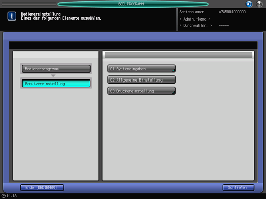Drücken Sie auf [Ende [BEDIENER]], um die Einstellung abzuschließen.