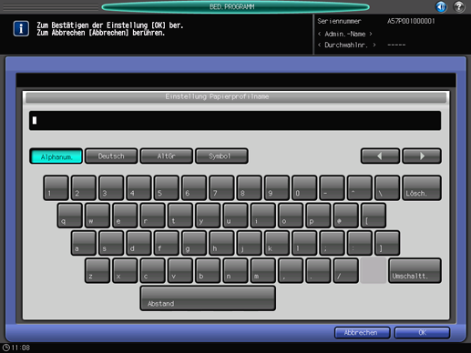 Geben Sie den gewünschten Papierprofilnamen ein. Es können bis zu 50 Ein-Byte-Zeichen (25 Zwei-Byte-Zeichen) eingegeben werden.
