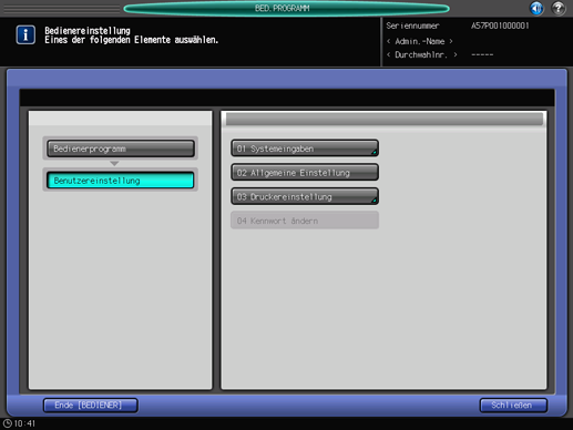 In beiden Fällen wird wieder der Bildschirm [Bedienereinstellung] angezeigt.