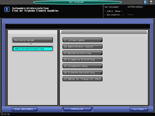 Gehen Sie wie unter Administratoreinstellung beschrieben vor, um den Bildschirm [Systemadministratoreinstellung] anzuzeigen.