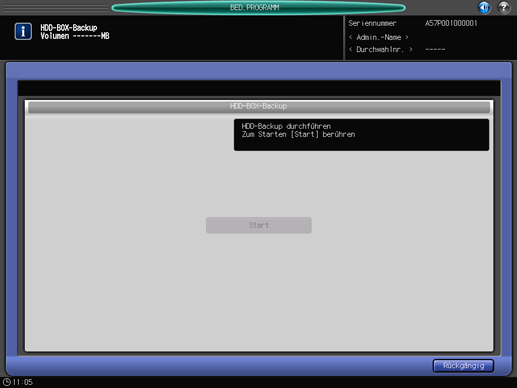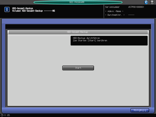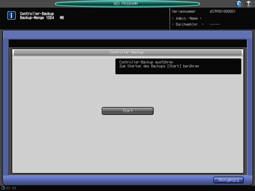 Drücken Sie im Bildschirm auf [Start], um die Sicherung der im Bildcontroller gespeicherten Einstellungsdaten zu starten.